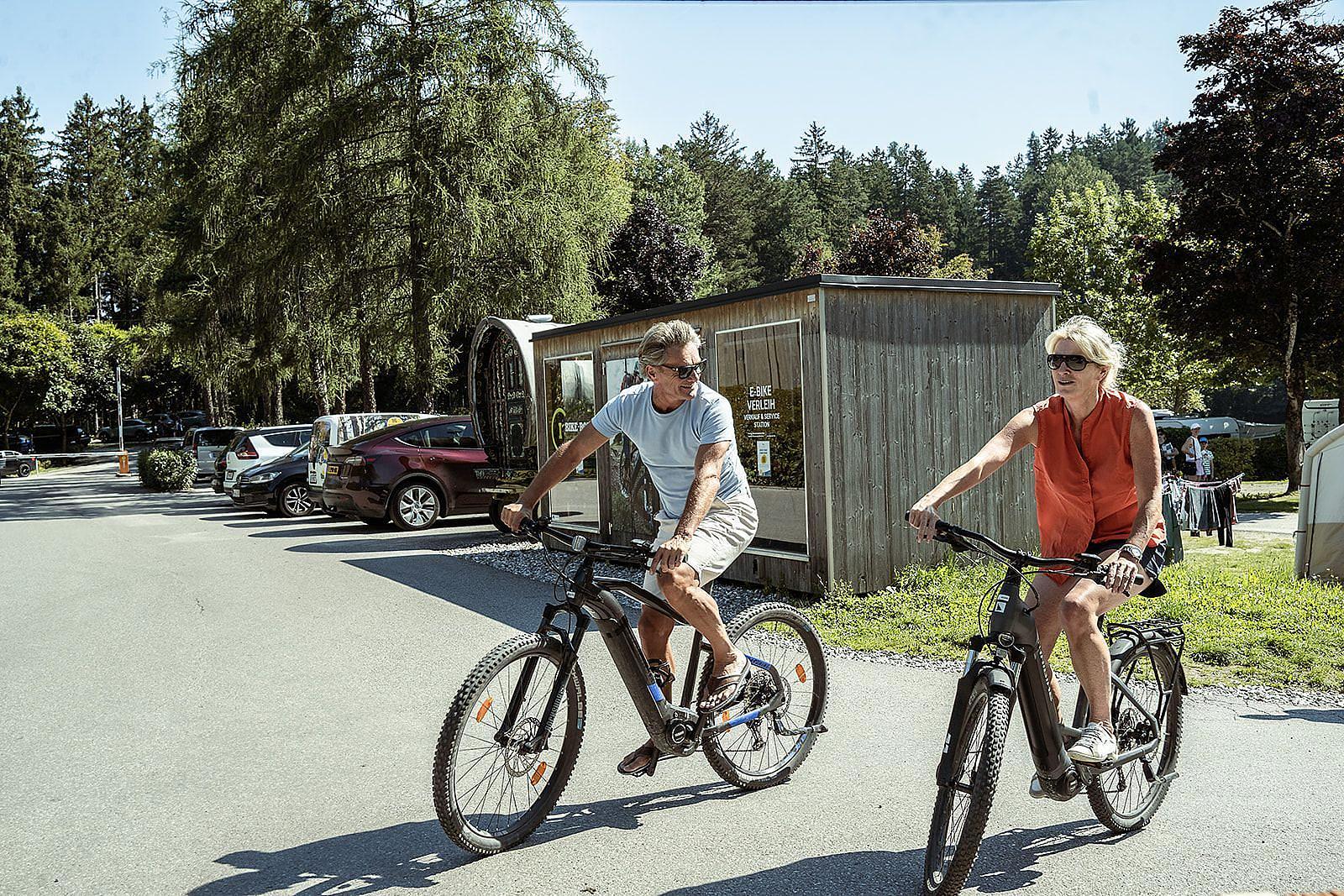 Sie brauchen kein Rad mitzubringen! Mieten Sie ein topmodernes E-Bike direkt am Platz. Wir bieten veschiedene Modelle für Erwachsene und zwei Exemplare für Kinder. Auch Helme und Versicherung sind verfügbar!