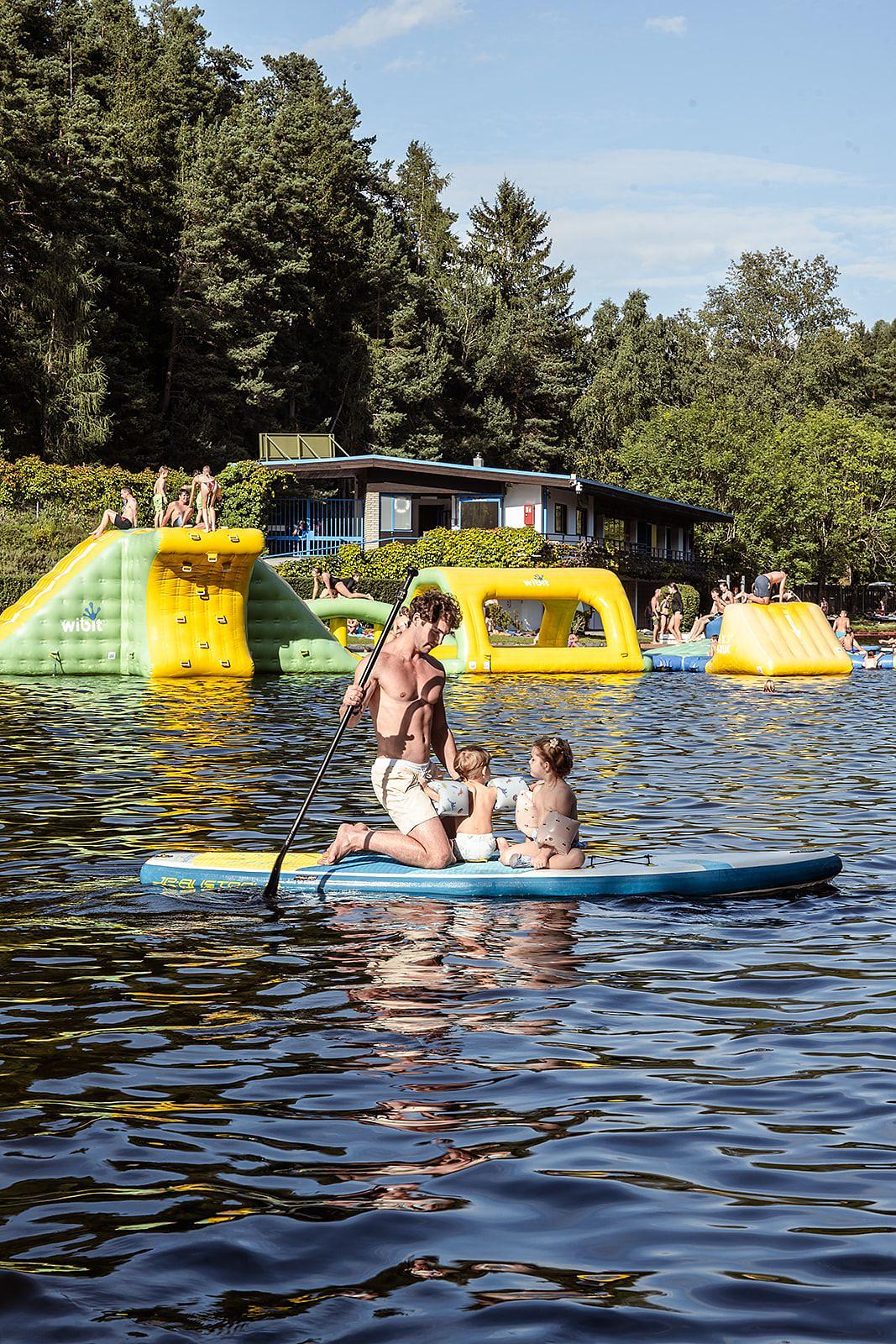 The private lake on site with an average water temperature of refreshing 22°C with its children’s bathing bay, non-swimmers’ area and green lawns for sunbathing forms the centre of our leisure facility. This is where fun, sports and adventure lovers meet. The lake area spanning 3,5 ha offers plenty of space for awesome water activities. Of course, bathing guests can use the modern sanitary facilities, changing rooms and safes for free.
